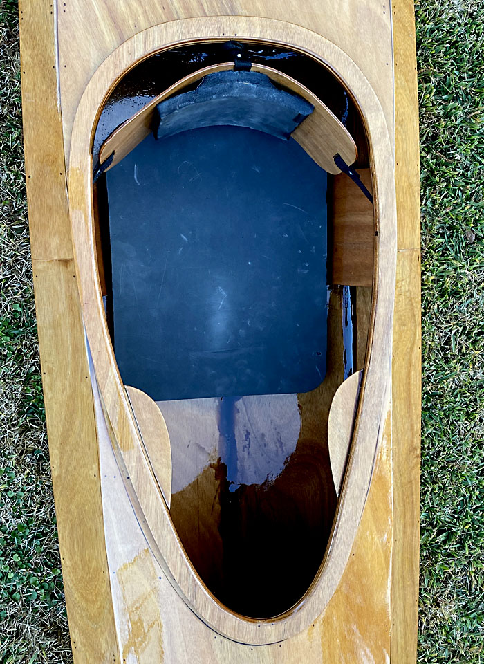 With four coats of varnish applied I’m moving on to outfitting the kayaks. It is time to install the hatches, seats and foot rests.