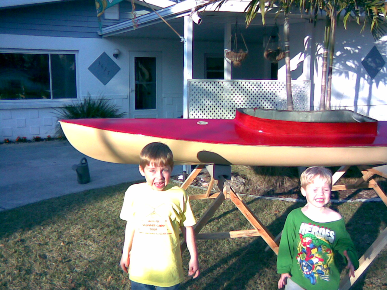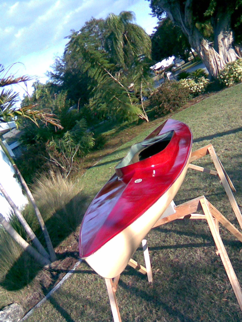 The calm gulf waters, protected bays and slow moving rivers which empty into them are a perfect environment to paddle, enjoy nature, and get some exercise. During my ten years there I bought a big yellow plastic sit-on-top “Cayman” by Dagger Kayaks (long discontinued) which got lots of use around Ft. Desoto Park, on the Hillsboro River, and in Sarasota Bay. For a year we lived in Temple Terrace just two blocks from Riverhills Park so I built a wheeled dolly to tote “big yellow” to the launch and back. A year or so later I picked up a green fiberglass boat custom designed by a Massachusetts boat shop. Primitive by today’s standards, it was beamy but stable for my young sons and I would sometimes tow it behind big yellow. sit-on-top could carry plenty of gear and weight wasn’t an issue when I loaded it on my wife’s Ford Taurus wagon, but when we ditched the wagon for a Kia minivan I found it challenging to load the boat on top of the taller van. I could lift it by myself, but occasionally something would slip and I’d scratch or dent the van, and at one point I injured my shoulder. We had the occasion to rent kayaks with friends while on a day-trip and I had the opportunity to paddle a longer, thinner fiberglass kayak. Wow, what a difference. Then one day along the Sarasota bayfront I saw someone launching a wooden kayak and I was awe struck. The boat was beautiful! I had to go strike up a conversation with the owner. I learned about the “stitch-n-glue” process and the owner showed me how light weight it was and said it was responsive and fun to paddle. When I got home that evening I started searching the web…