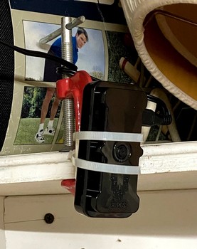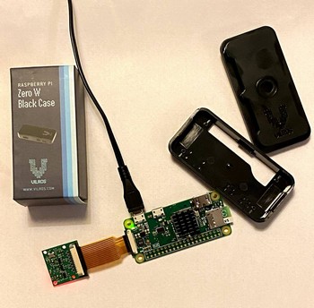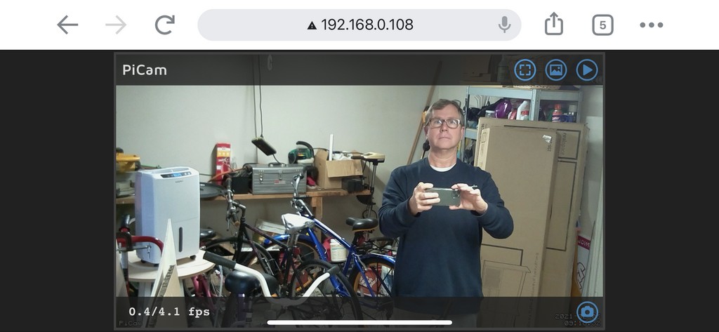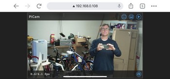 Following these and these instructions, I purchased, assembled components, configured the software, and installed a wifi cam at one end of the workshop. This is a Raspberry Pi Zero W single-board computer running MotionEyeOS with a 3 megapixel camera connected to the Pi and all of this enclosed in a plastic case. I’m at about $40 all-in, with the micro-SD card. I also use MotionEye on a LINUX box to control my home security cameras, so I was already somewhat familiar with that. Below are a few photos of this contraption. While disassembled you can see the green LED on the Pi shows it is powered on, and the red LED on the camera shows it is active. I strapped the camera to a C-clamp, clamped it to a shelf, plugged it in and pointed it appropriately. All of the rest is controlled remotely by logging into the camera’s IP address from my laptop.