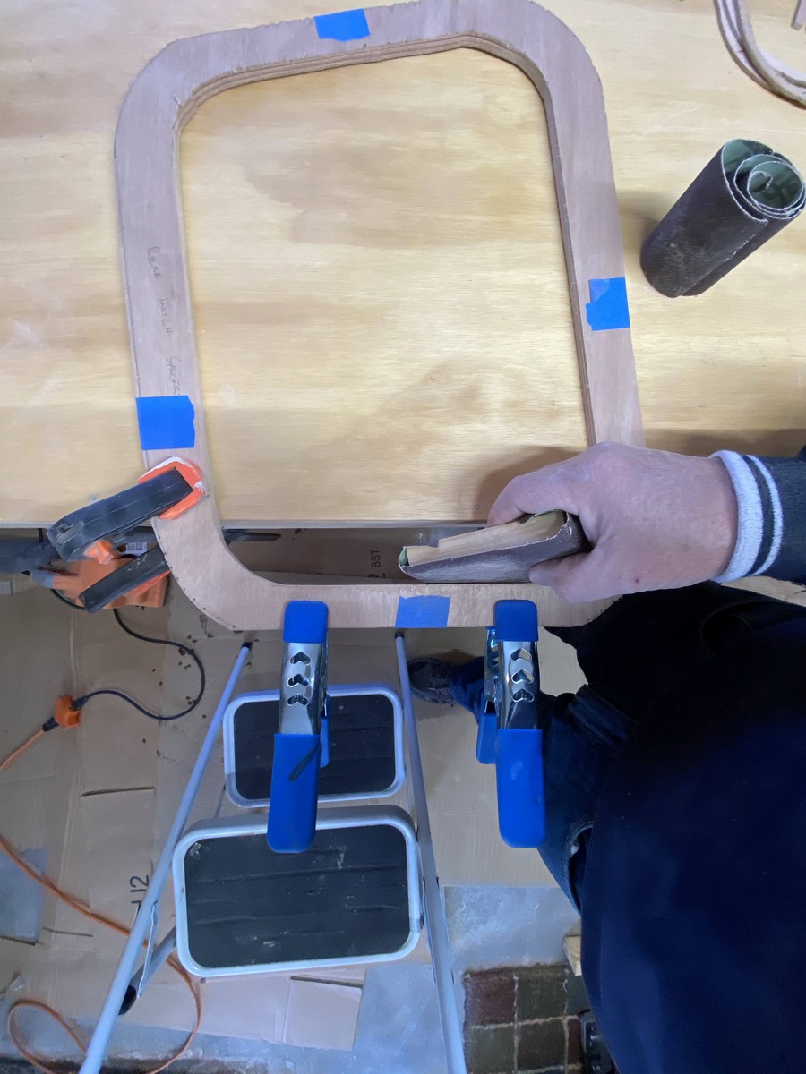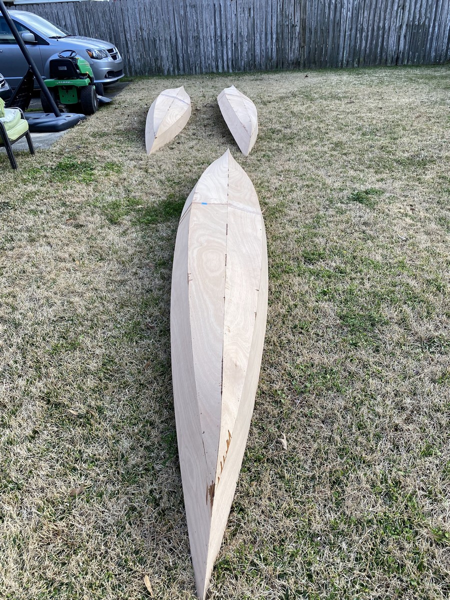 One thing I’ve come to understand is what a tremendous time savings exists for those builders starting with a CNC kit instead of plans and raw lumber. For example, today I spent most of my afternoon simply sanding to shape the components for the deck hatch sills and spacers which were cut out with a jigsaw. I tried to leave a bit of a buffer and I had to sand the excess wood down to the pencil line. Since I’m building three Shearwater Sports at once I do enjoy some assembly line efficiencies, but it’s no Henry Ford manufacturing plant. I watch YouTube shop videos from CLC and other builder’s time lapse movies and I’m a little discouraged at how slow my progress is. The Supremes were right, you can’t hurry love. But I know I’ve been fortunate with the weekend weather so far this winter and I’m excited as these boats start to take shape. I am really looking forward to that first paddle experience on a local lake! I’ll just have to wait.