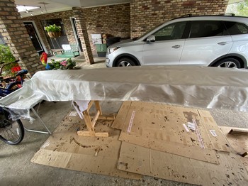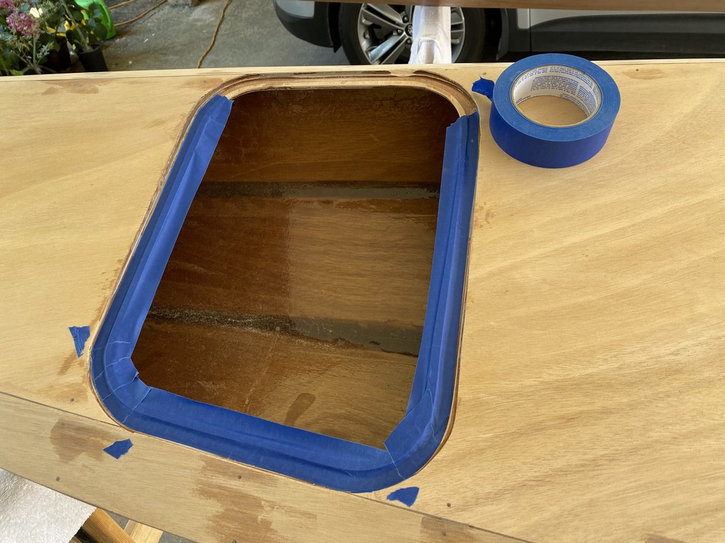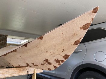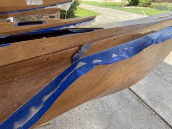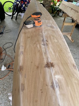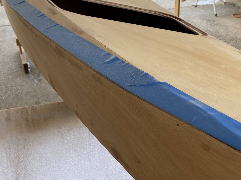 Exterior work is far easier than interior, but there is still an awful lot of sanding… Ensuring the plywood and joints are smooth before proceeding with epoxy and fiberglass sheathing is laborious