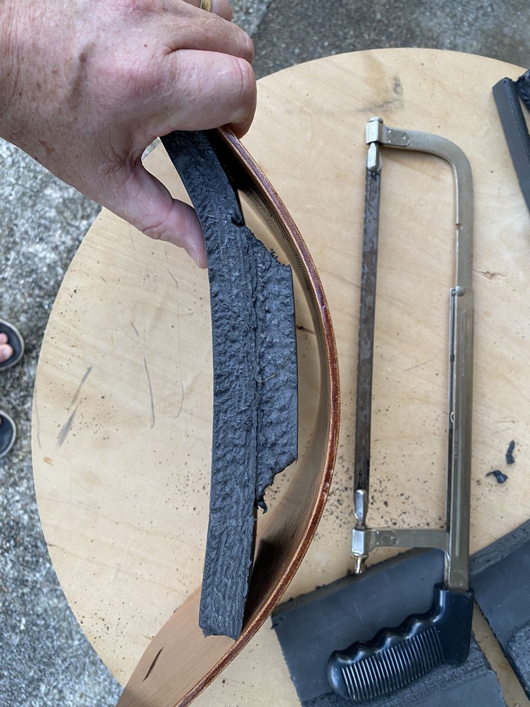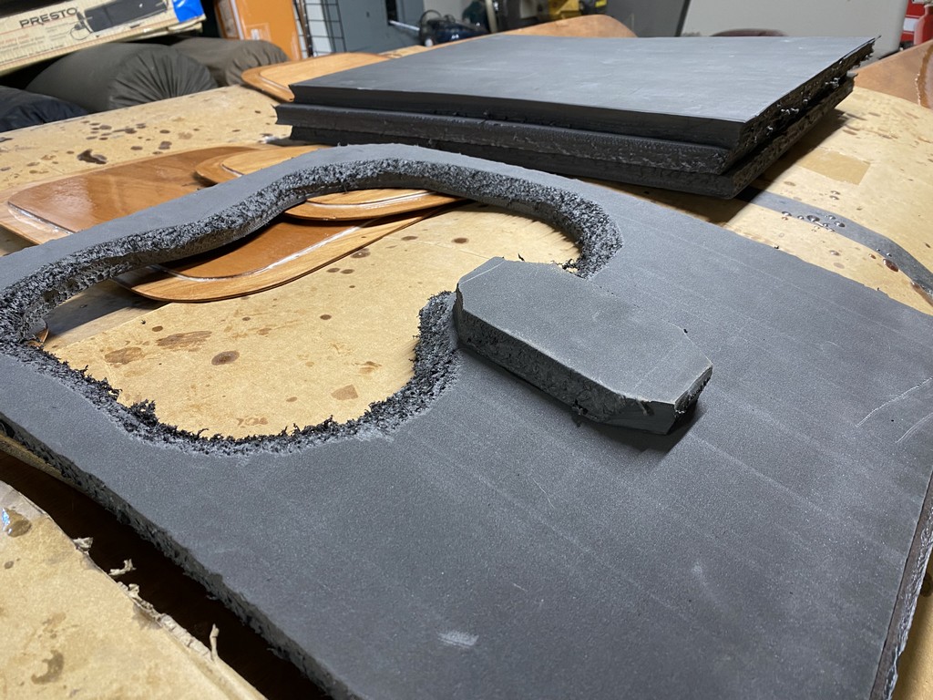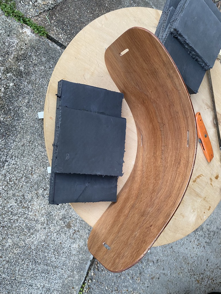 The wooden seat backs really do have too tight of a curve because the propane cylinder is too small. I decided to mitigate that by gluing a foam spacer to fill the back of the main seat-back pad. All foam was glued using contact cement. I won’t really know how successful any of this is until I mount everything in the boats and try them out. Worst case is I remove it and try again.