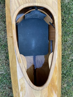 Gluing a layer of minicel foam to each hip brace will be a future step after we’ve done a bit of test paddling. If necessary, two layers of minicel foam could be used to tighten the seat area.