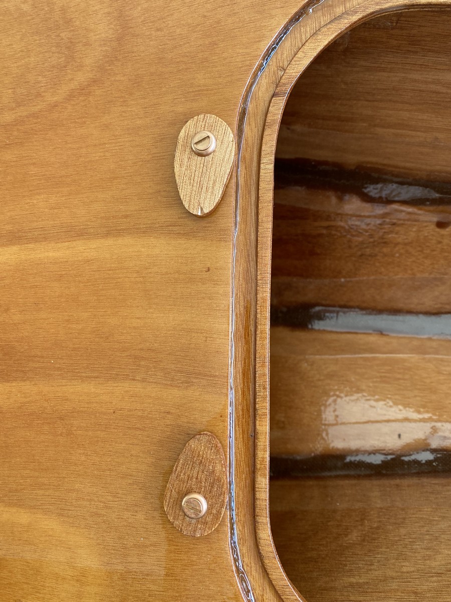 With four coats of varnish applied I’m moving on to outfitting the kayaks. It is time to install the hatches, seats and foot rests.