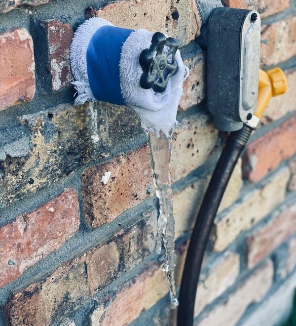 Winter has arrived in south Louisiana as evidenced by this icicle dangling from a hose bib. The cool weather halts epoxy work as it won’t cure.